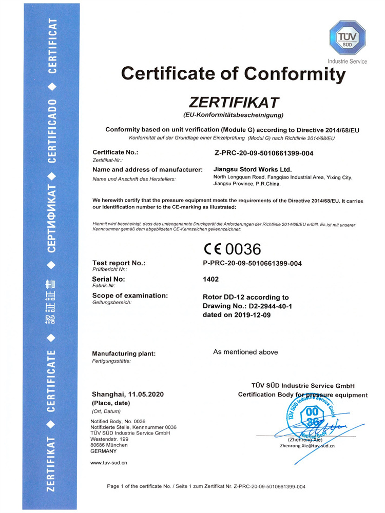 DD-12圓盤干燥機(jī) PED Model G證書