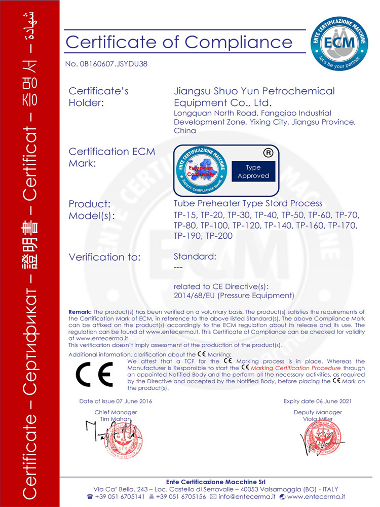預(yù)熱器 ECM PED證書