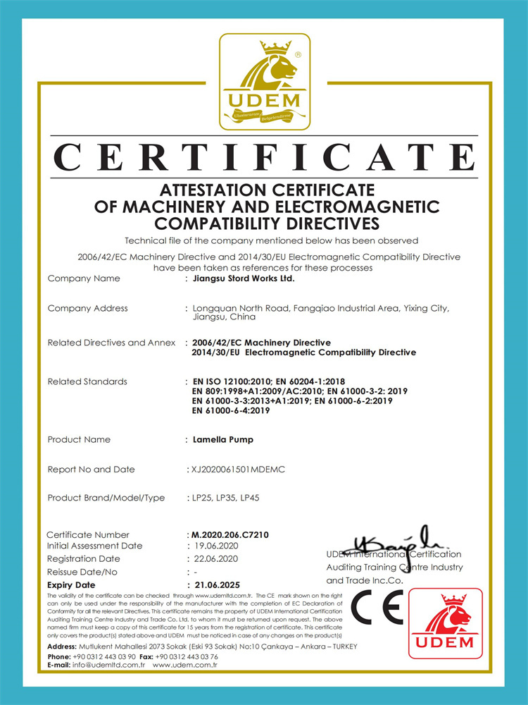 葉片泵CE 證書