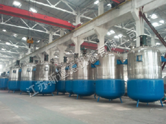 反應容器指主要用來完成物理、化學反應的壓力容器,例如反應釜、氧化釜、分解釜、聚合釜、結晶釜等。我公司可制造容積120m3、壓力10Mpa,單臺重量100T的大型反應釜。加熱的方式有電、蒸汽、導熱油、紅外線等;冷卻方式為夾套、外盤管和釜內盤管冷卻,轉數0~1000r/min變頻調速。攪拌槳葉的形式可根據用戶的要求任意選配。材料可為碳鋼、不銹鋼、鈦、鋁合金、雙相鋼及其復合材料。